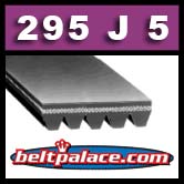 295J5 Poly-V rib belt. 5 Ribs. 29.5” (750mm) O.C. - PJ750 Metric belt. STANDARD DUTY “J” Series Poly-V (Micro V) ribbed belts are designed to replace OEM belts on extra heavy-duty applications such as 295J5 sander/planer belts, compressor belts, 295J5 (5-Rib PJ750) fitness drive belts, and electric motor drive belts. AKA: J5-295 Belt.